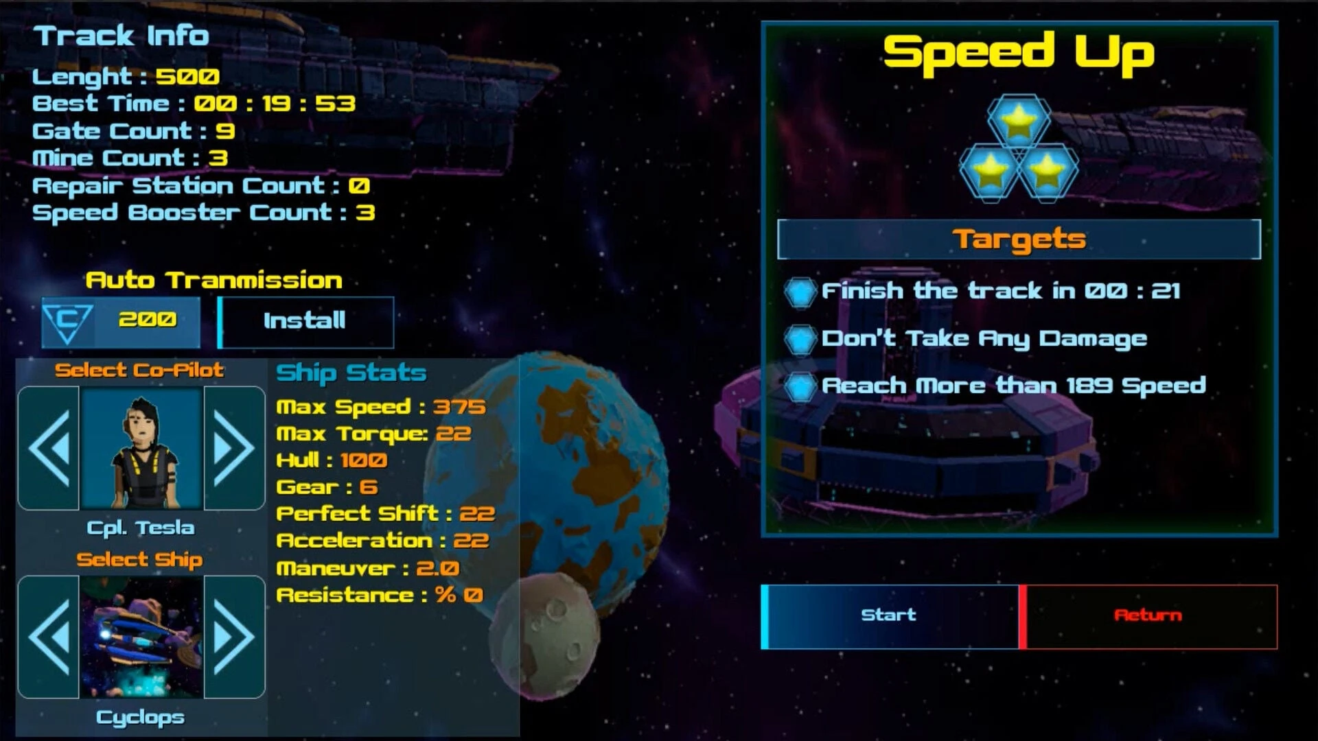 - 4 Different Co-Pilot with 20 different abilities. You need to choose the right Co-Pilot for the right mission.