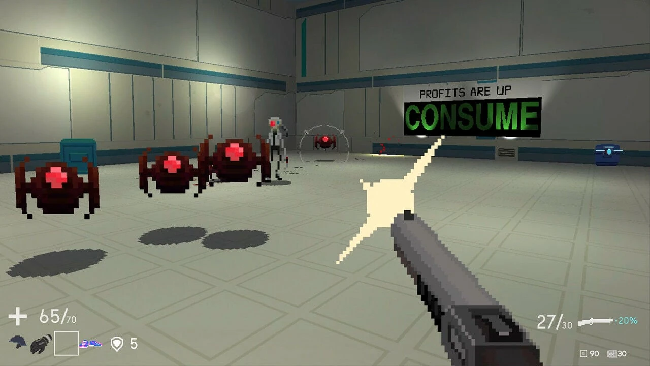 - RANDOMLY GENERATED LEVELS – Every level is generated randomly by the game. The layout is different, the enemies are different, the loot is different, even the propaganda posters on the walls are different. You never know what’s around the next corner.