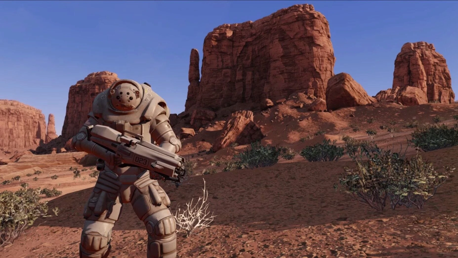 This is Jetpack Powered Exosuit Deathmatch! Prepare for Intense Dogfights with Lasers and Missile Swarms. Hunt your foes across vast landscapes. Then let loose with vicious barrages of cannon-fire, railguns, missile rain and more. Power is health, but it is also your ammunition. In addition, the more you fly and the more you shoot, the more Heat you generate and easier it will be for your opponent to find you and get weapons-lock. If you can find your opponent first, you may get a crucial first strike and a fast kill. But if you don’t, prepare for intense, fast-paced, and often lengthy ground and areal duels where split second decisions count. Use your Exo-Armor subsystems for offense and defense.